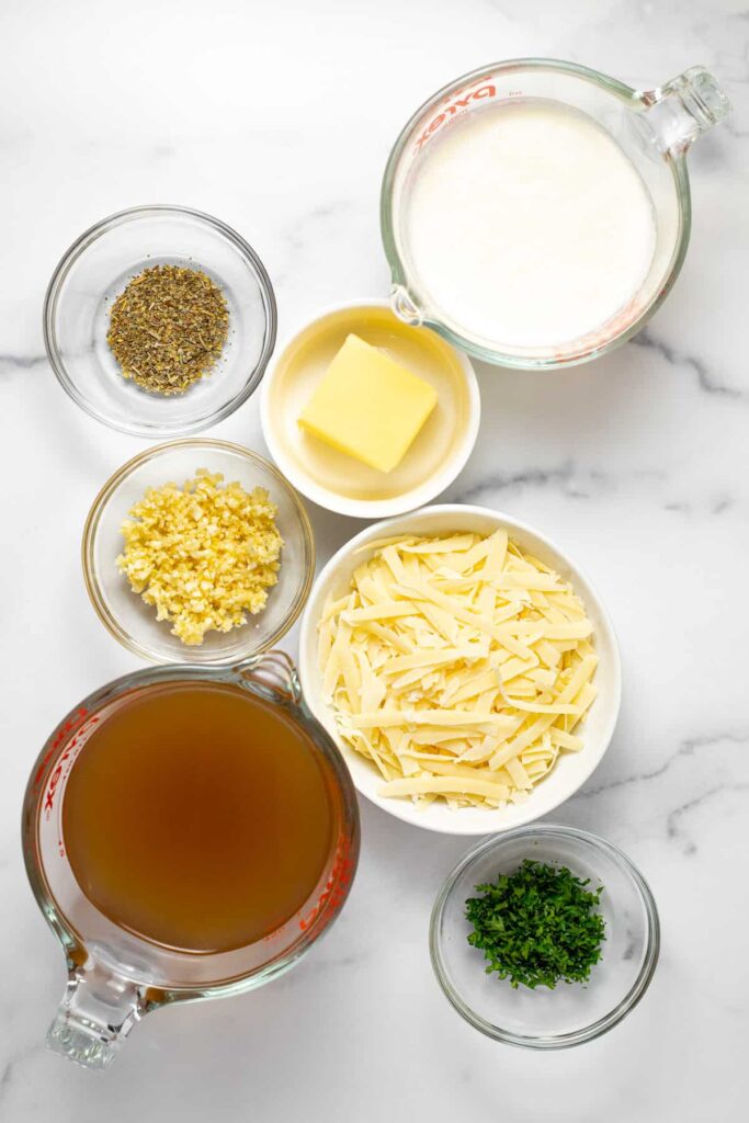 • Heavy Cream – Heavy cream will make this parmesan sauce luxuriously creamy. If you don’t have heavy cream, you can replace it with half and half, but keep in mind that the sauce will likely have a bit thinner consistency.
