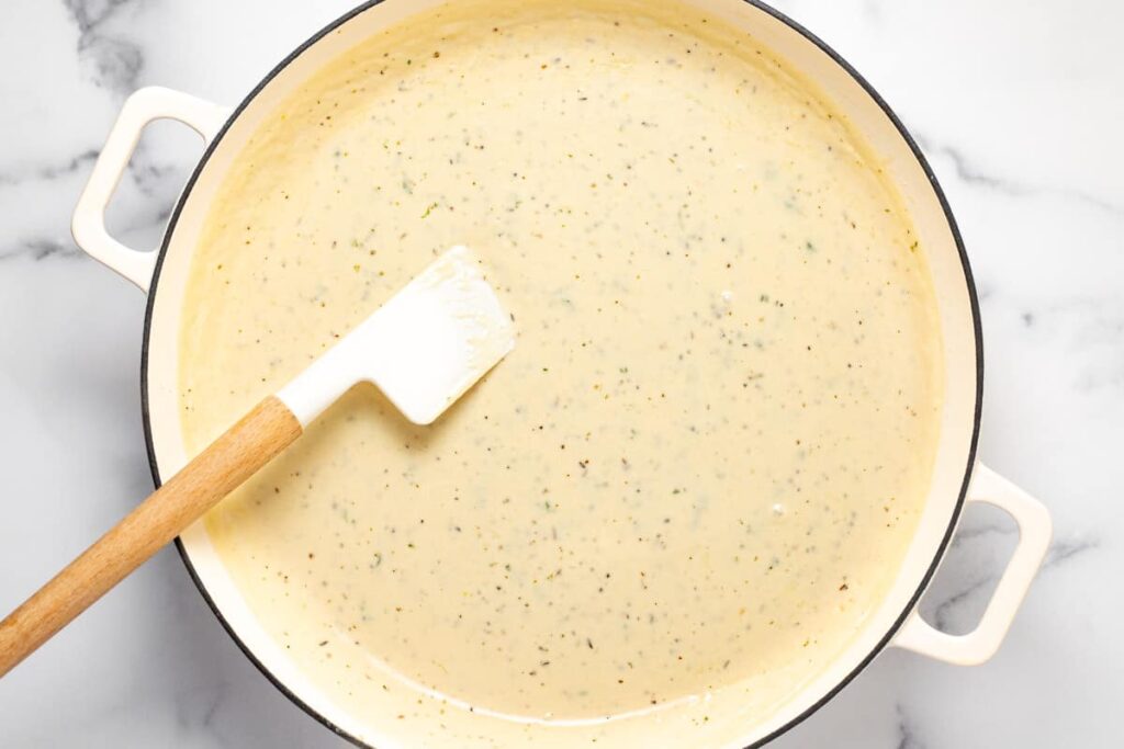 • The sauce will thicken quickly as soon as it cools. Keep this in mind while you’re letting it simmer. If it doesn’t seem to be very thick, remember that it will get thicker as it cools. Also, if it seems too thick when it’s done, just add a splash of broth or a bit more cream to thin it out! If you’re serving it with pasta you could also thin it out with a bit of pasta water when you toss it with the pasta!