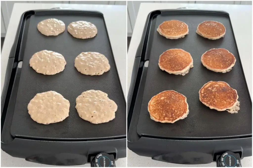 - Tip for extra fluffiness: Let the batter rest for 3–5 minutes before cooking. This allows the pancake mix to fully hydrate.