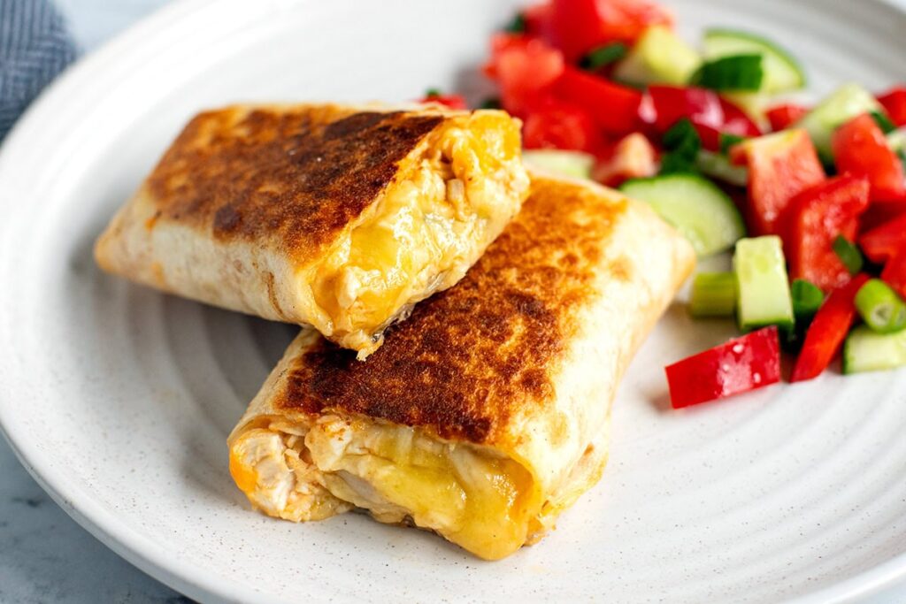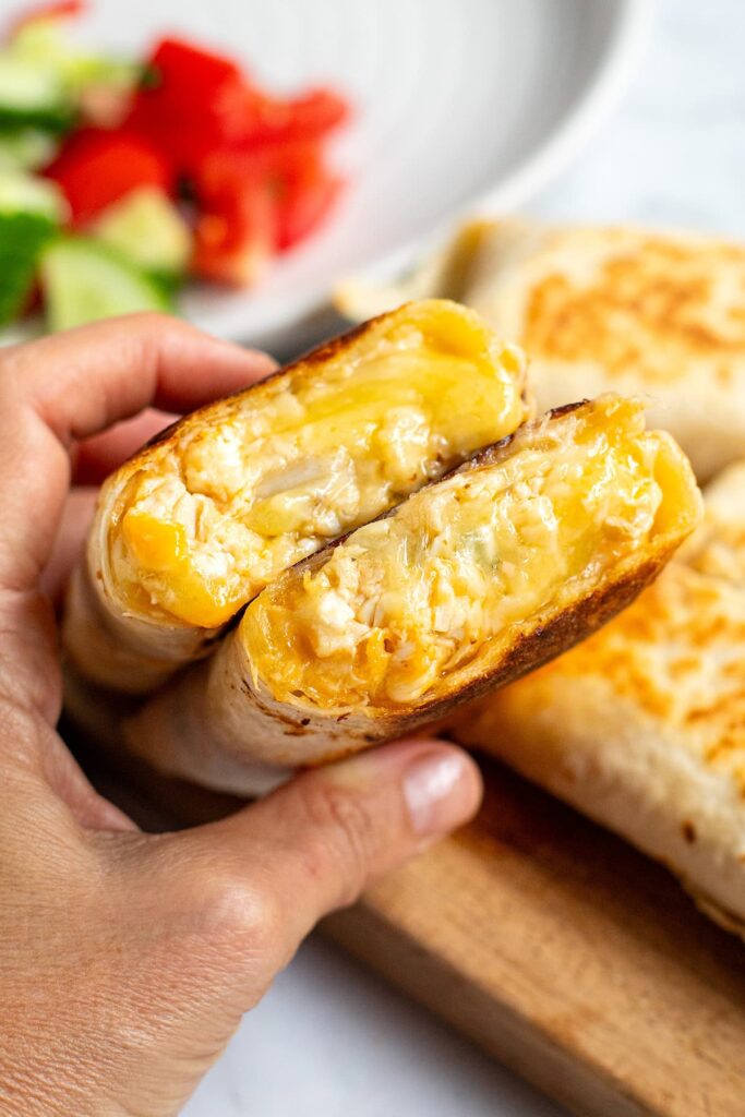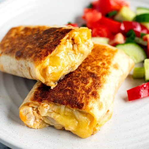 The contrast of the crispy, golden wrap and that gooey, cheesy filling is so good in every bite. The garlic is fresh and punchy (but feel free to adjust amounts), and you can totally prep the chicken mix ahead. It works with regular tortillas or low-carb wraps, and it pan-fries like a dream. I made two wraps and still had leftover filling—which made the best grilled cheese sandwich the next day. Flexible, freezer-friendly-ish, and just really good.