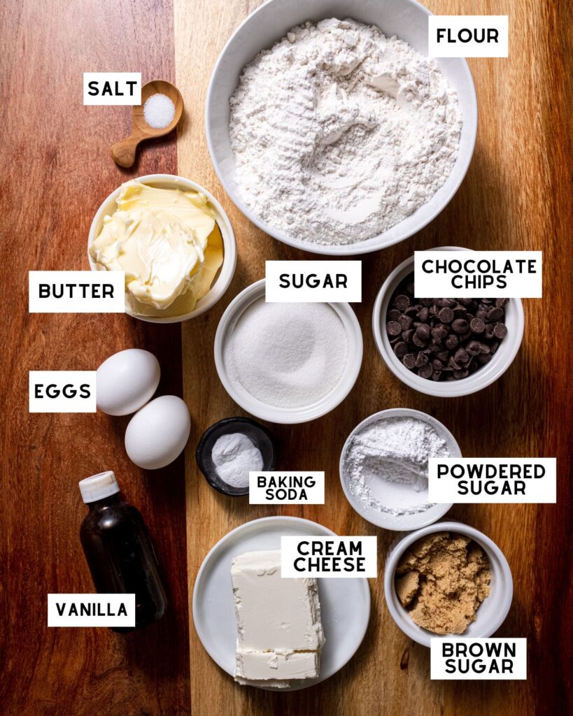 • Flour: I’ve used all purpose flour for these chocolate chip cheesecake cookies, but if you’re gluten intolerant you can use gluten free all purpose 1:1 baking flour.