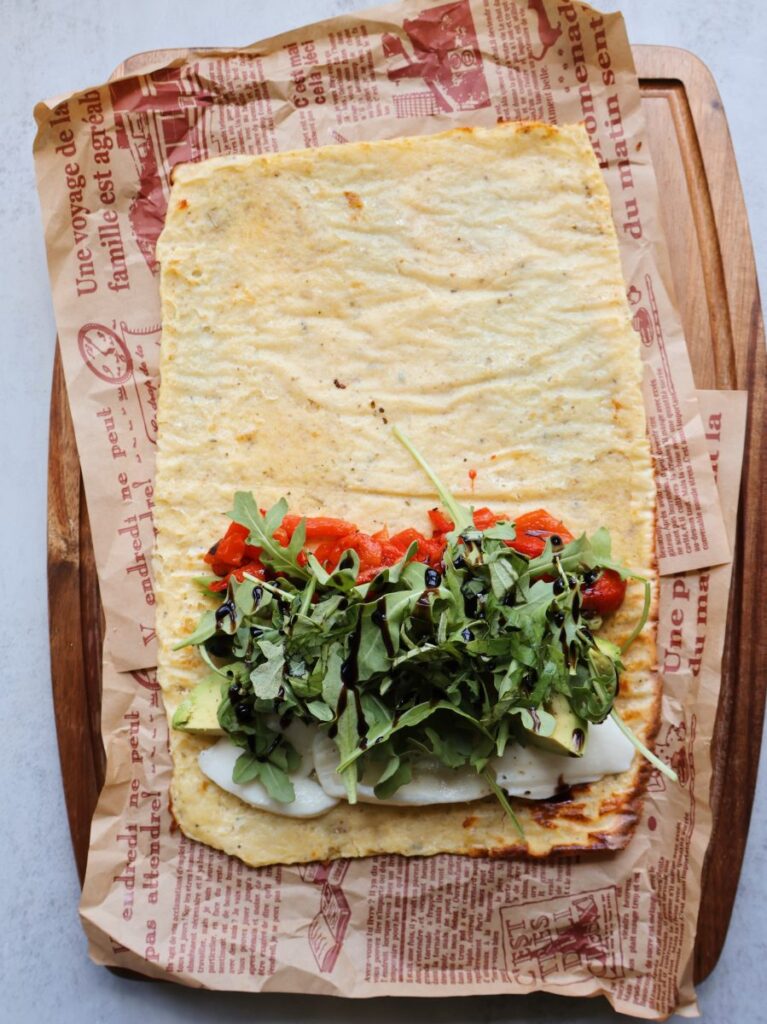 - Once baked, let the wrap cool completely on the tray. This helps it firm up. Then carefully peel it off the parchment paper—it should lift easily when fully cooled.