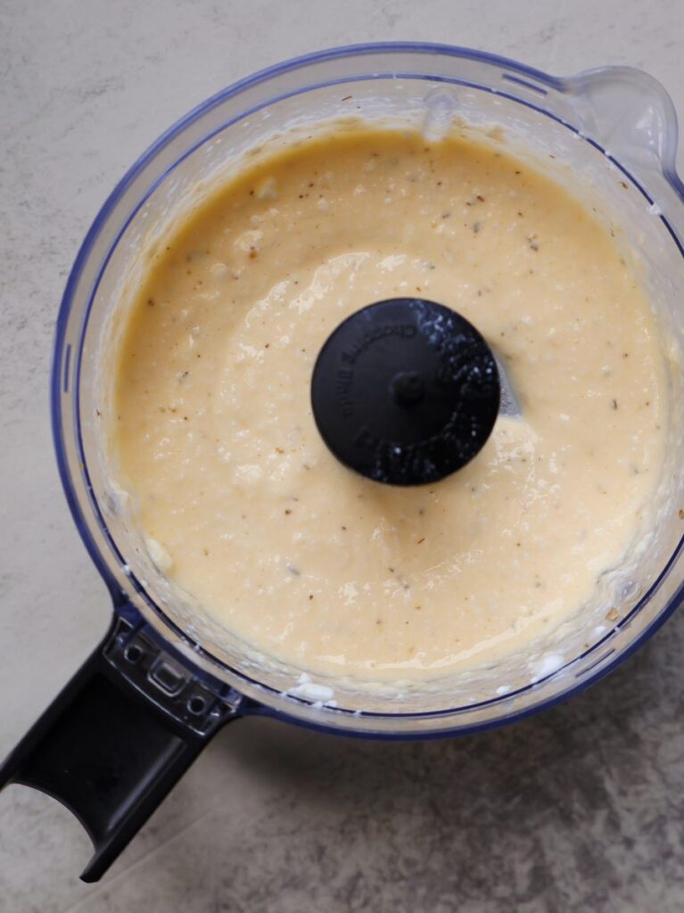 Add your cottage cheese, eggs, Parmesan, garlic powder, and Italian seasoning to a blender or food processor. Blend on high for about 45 seconds to 1 minute, until the mixture is super smooth—no lumps left behind. You want it to look like a creamy batter.