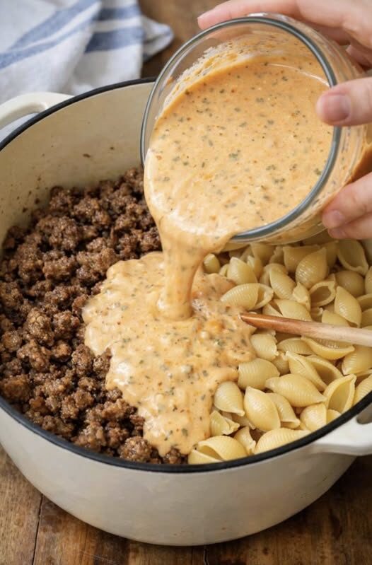 This comforting one-pot pasta dish combines tender pasta shells and savory ground beef coated in a rich, creamy herb cheese sauce. It’s quick, hearty, and perfect for an easy family dinner.