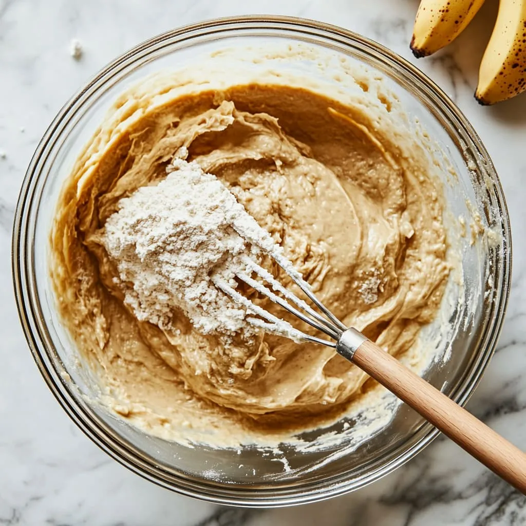 Add the dry mixture to the wet ingredients. Use a rubber spatula or wooden spoon to fold everything together. Don’t overmix — just stir until no dry streaks remain. If you’re adding mix-ins like nuts or chocolate chips, fold them in at this stage.