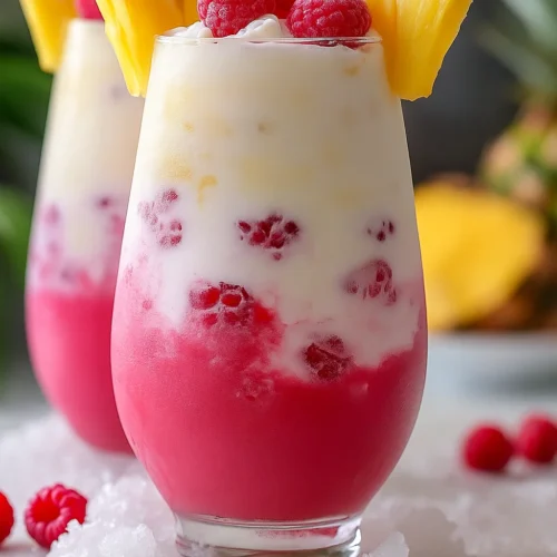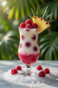There are drinks that feel like a vacation in a glass, and then there are drinks that transport you there. The Raspberry Colada Twist falls into the latter category. With its vibrant pink hue, tropical aroma, and luscious texture, this refreshing blend of frozen raspberries, creamy coconut, and juicy pineapple evokes the essence of island life with every single sip.